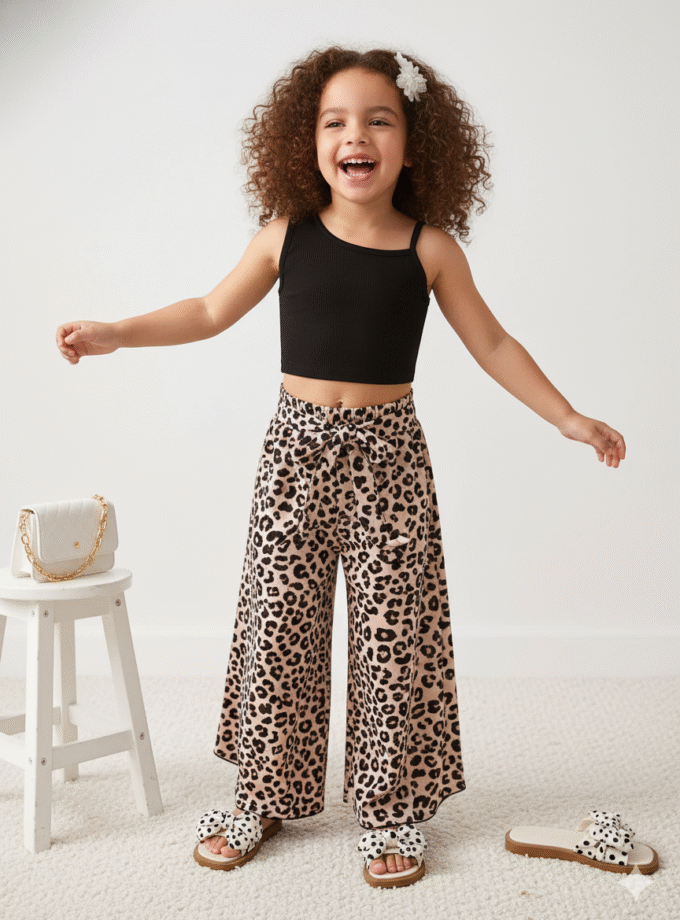 Add a touch of modern flair to your little one’s wardrobe with this Abstract Print Pant & Black Crop Top Set (Style 2009). Designed from soft cotton with spandex, it ensures superior comfort, stretch, and breathability, making it perfect for both playtime and casual outings.